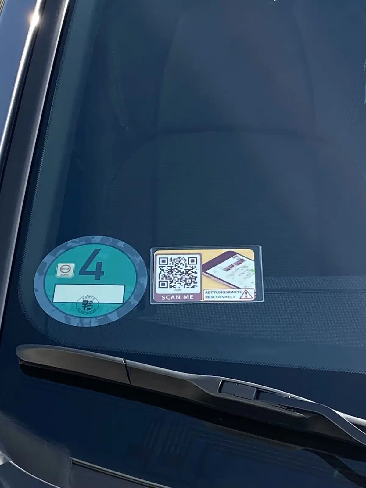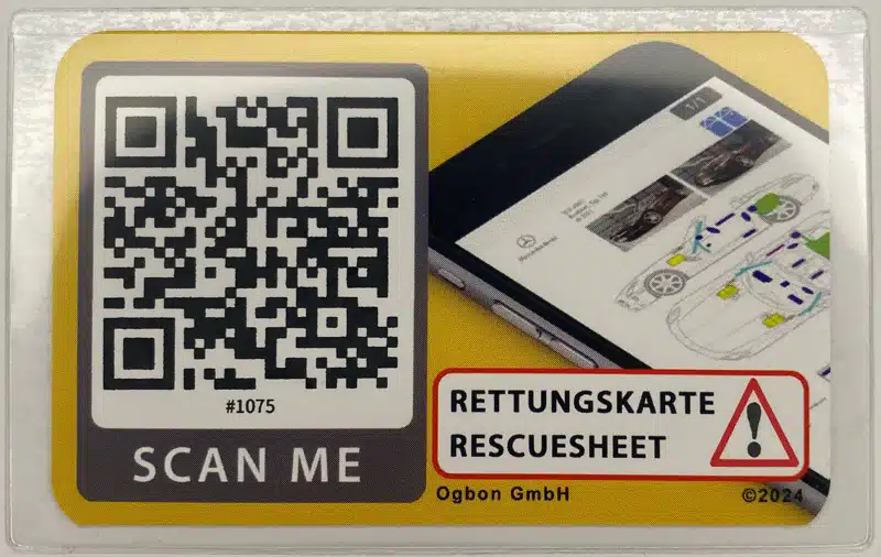 Rettungskarte per QR-Code / Aufkleber / Auto Windschutzscheibe / Kartenhรผlle selbstklebend / Rescue Card Sheets