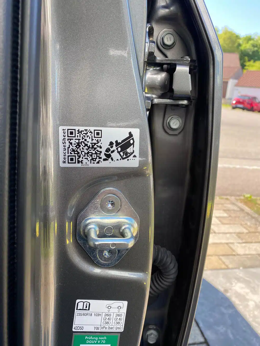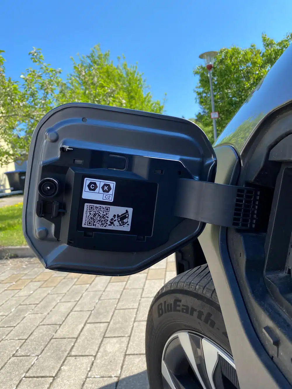 2ร wasser- und รถlfeste Aufkleber mit QR-Code fรผr die B-Sรคule und den Tankdeckel
